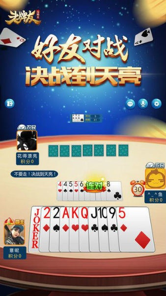5、发牌、选牌、出牌,操作简单易上手,更有智能提示出牌帮助您!