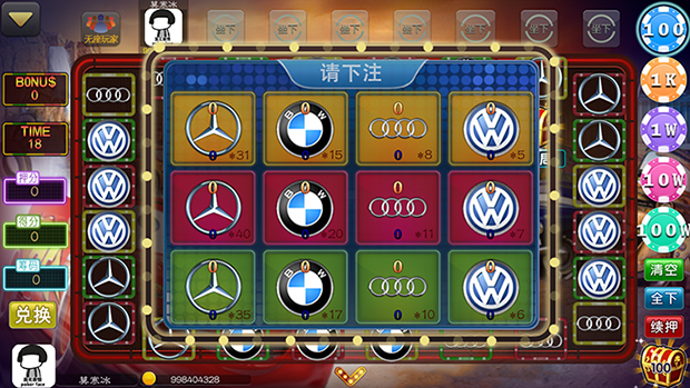 游戏以奔驰、宝马等名车为主题,玩家通过押注车标来游戏。